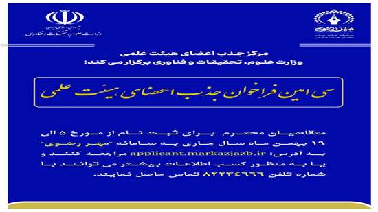 مرکز جذب اعضای هیئت علمی وزارت علوم، تحقیقات و فناوری برگزار می‌کند؛