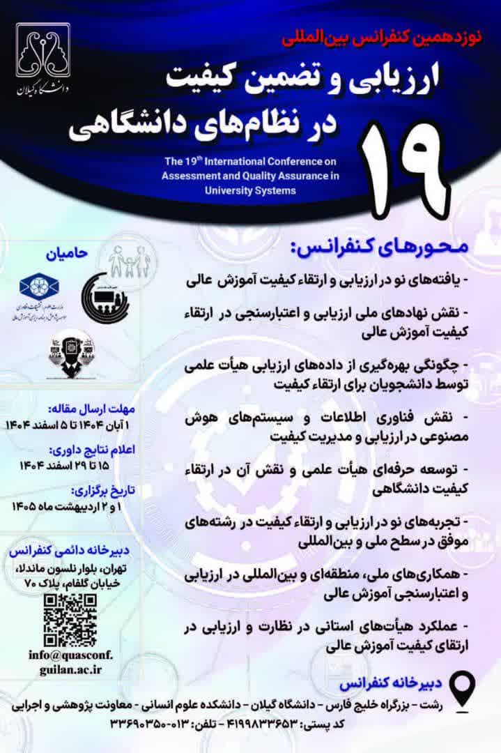 نوزدهمین کنفرانس بین المللی ارزیابی و تضمین کیفیت در نظام های دانشگاهی به میزبانی دانشگاه گیلان در اردیبهشت ماه 1405 برگزار خواهد شد .